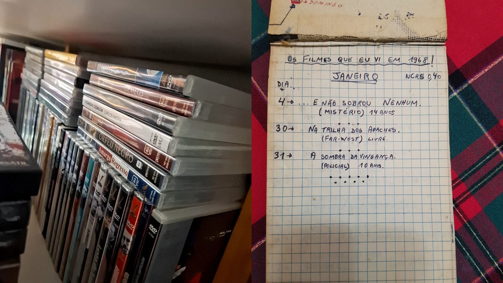 O vô Caco tinha um caderninho, onde anotava os títulos dos filmes assistidos, em ordem alfabética, classificando-os com estrelinhas — de uma até quatro, um ritual silencioso de avaliação crítica (hoje costumo brincar com meus alunos que meu avô tinha seu letterboxd analógico). Ali, eu, ainda pequena, era iniciada nesse universo paralelo, onde nem sempre as regras do mundo adulto importavam. Filmes muitas vezes inadequados para a minha idade; mas naquela época não havia preocupação com classificação indicativa.